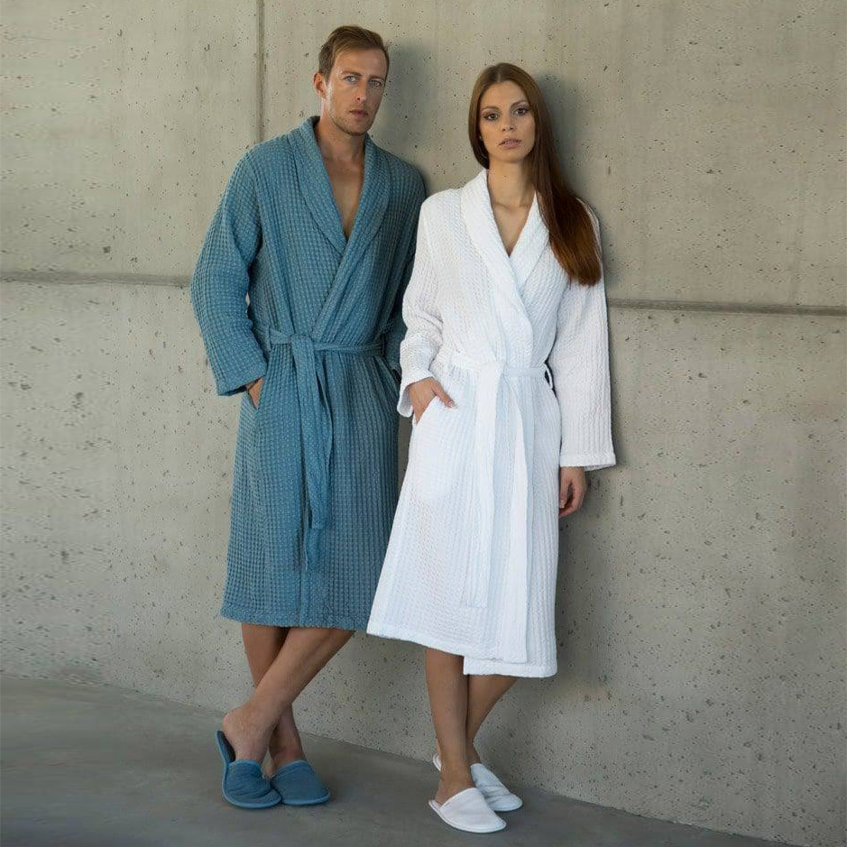 Халат вафельный Pousada (Поусада) от Abyss & Habidecor (Абисс энд Хабидекор) выполнен их 100% египетского длинноволокнистого хлопка. Халат имеет текстурированный квадратный узор по всей длине, классический крой — воротничок-шалька, длина чуть ниже колен, два кармана и пояс. Для производства халатов используется самый лучший из египетских хлопков — Гиза 70. Пряжа в 2 нити производится из длинноволокнистого хлопка, что обеспечивает максимальный уровень впитываемости влаги, к тому же ваш халат остается роскошно мягким длительный срок. Плотность хлопкового полотна идеально подобрана для мягкости и легкости халатов.