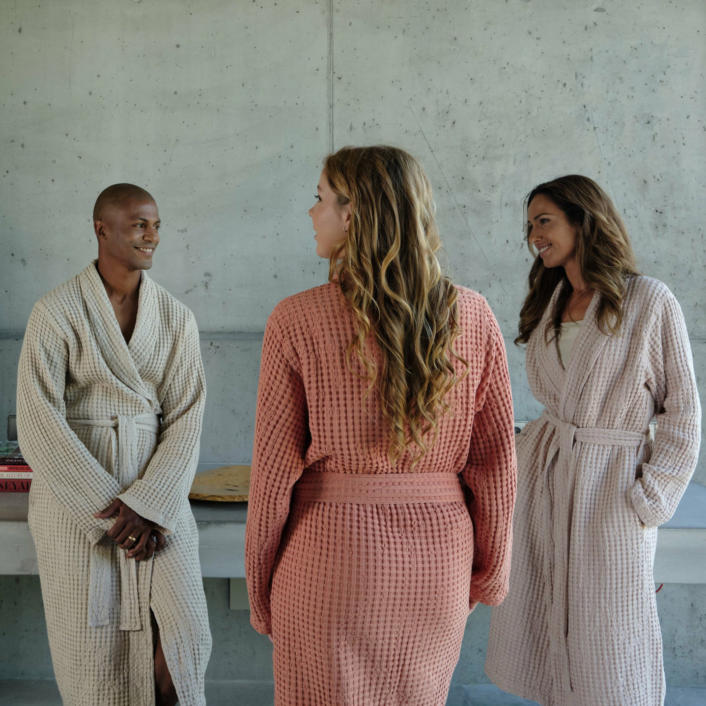 Халат вафельный Pousada (Поусада) от Abyss & Habidecor (Абисс энд Хабидекор) выполнен их 100% египетского длинноволокнистого хлопка. Халат имеет текстурированный квадратный узор по всей длине, классический крой — воротничок-шалька, длина чуть ниже колен, два кармана и пояс. Для производства халатов используется самый лучший из египетских хлопков — Гиза 70. Пряжа в 2 нити производится из длинноволокнистого хлопка, что обеспечивает максимальный уровень впитываемости влаги, к тому же ваш халат остается роскошно мягким длительный срок. Плотность хлопкового полотна идеально подобрана для мягкости и легкости халатов.
