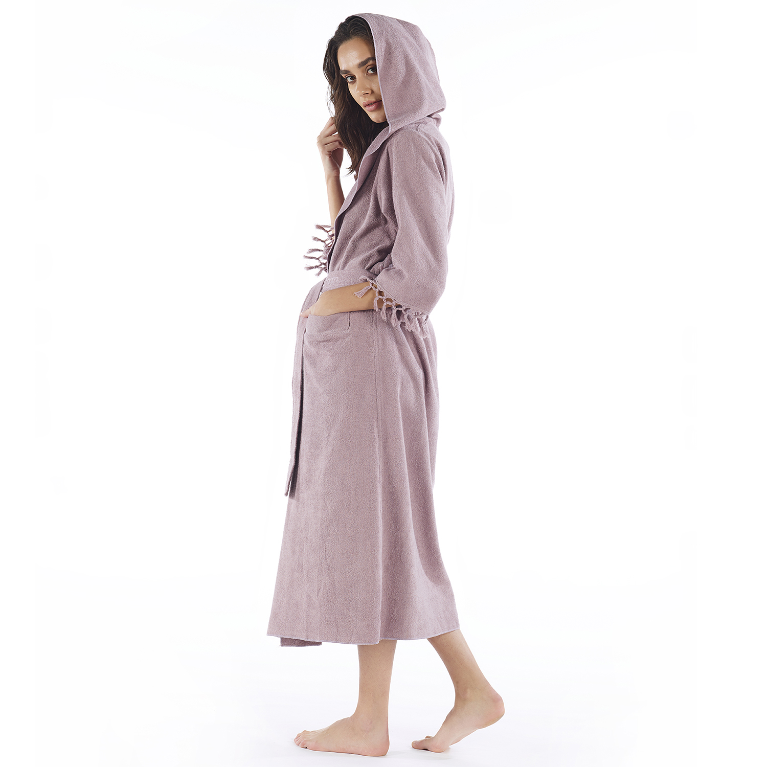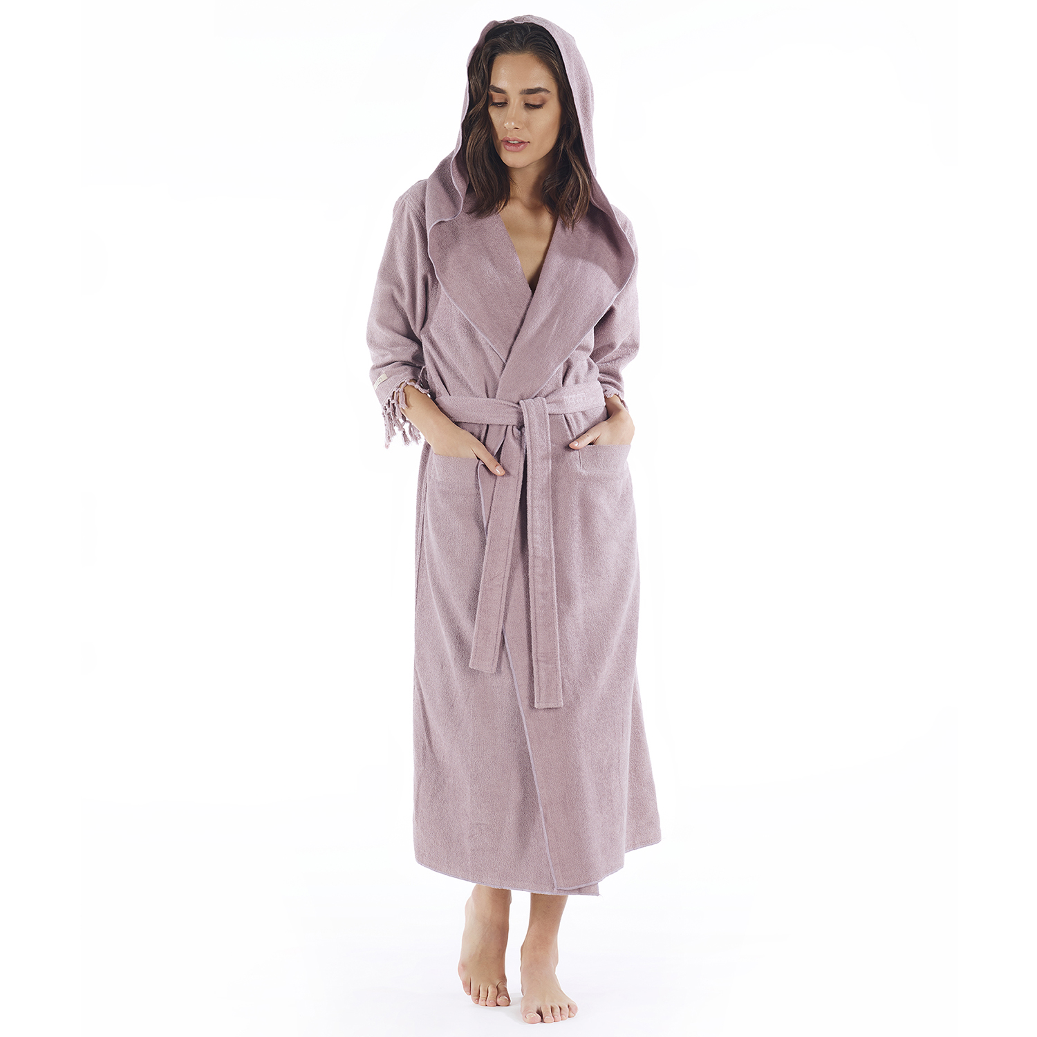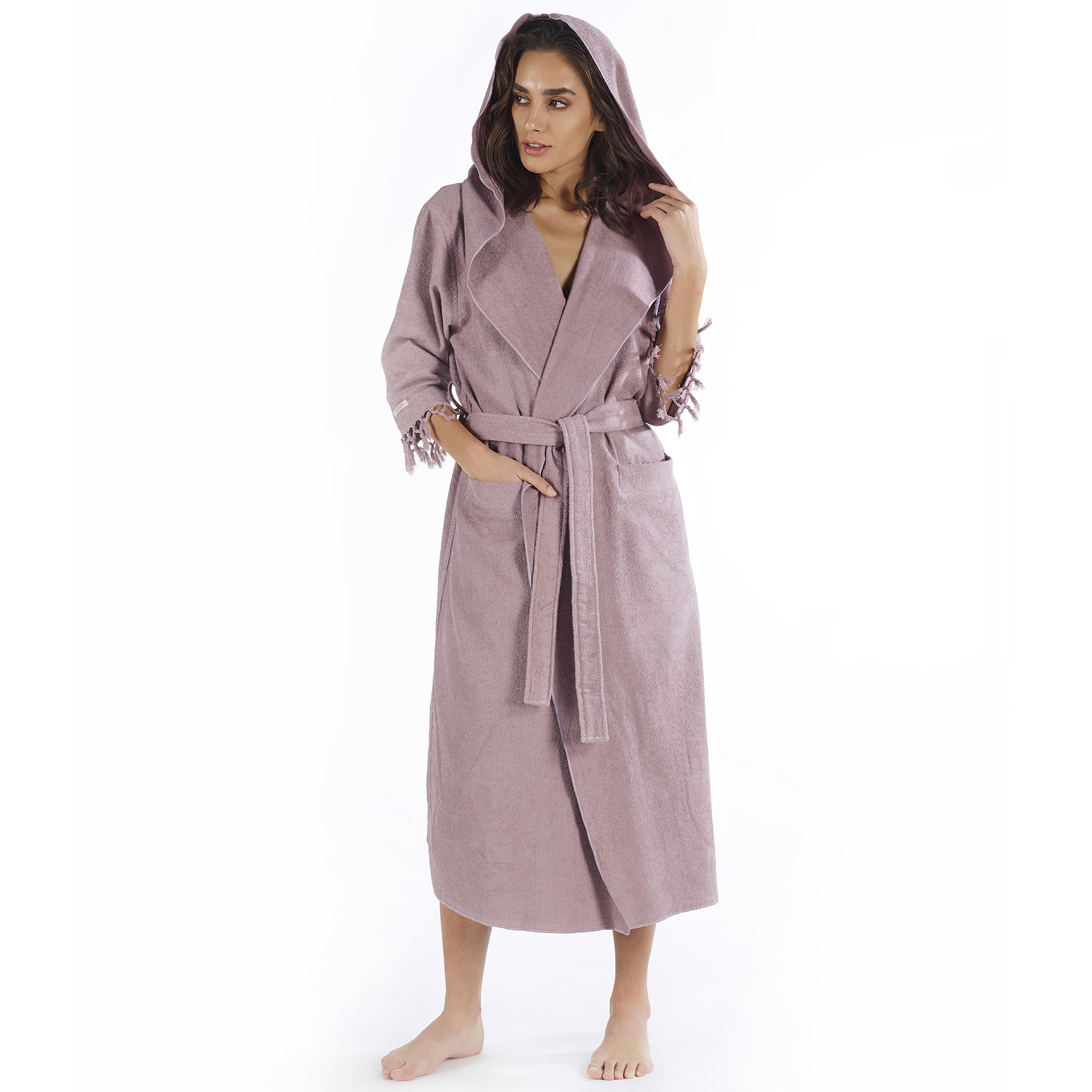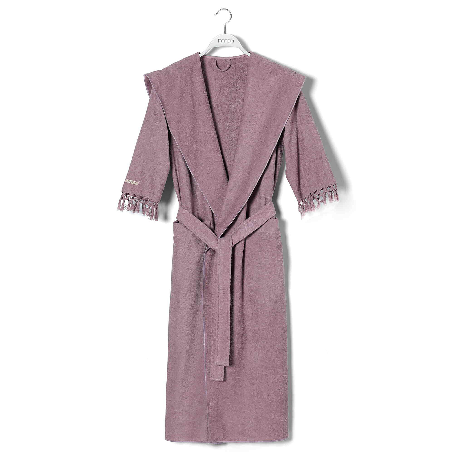Махровый облегченный халат с коротким рукавом и капюшоном Meyzer Tassels (Мейзер Тасселс) от бренда Hamam (Хамам) — это нежнейшее полотно, очень приятное к телу, имеющее отличные впитывающие свойства. Халаты Meyzer мягкие и нежные, выполнены из махры с низкой петлей. Халат окутает вас нежностью заботой, его мягкая ткань сохранит тепло только что принятого душа, мягко впитав все капельки воды. В серию Meyzer Tassels также входят полотенце для рук и лица, банная простыня.