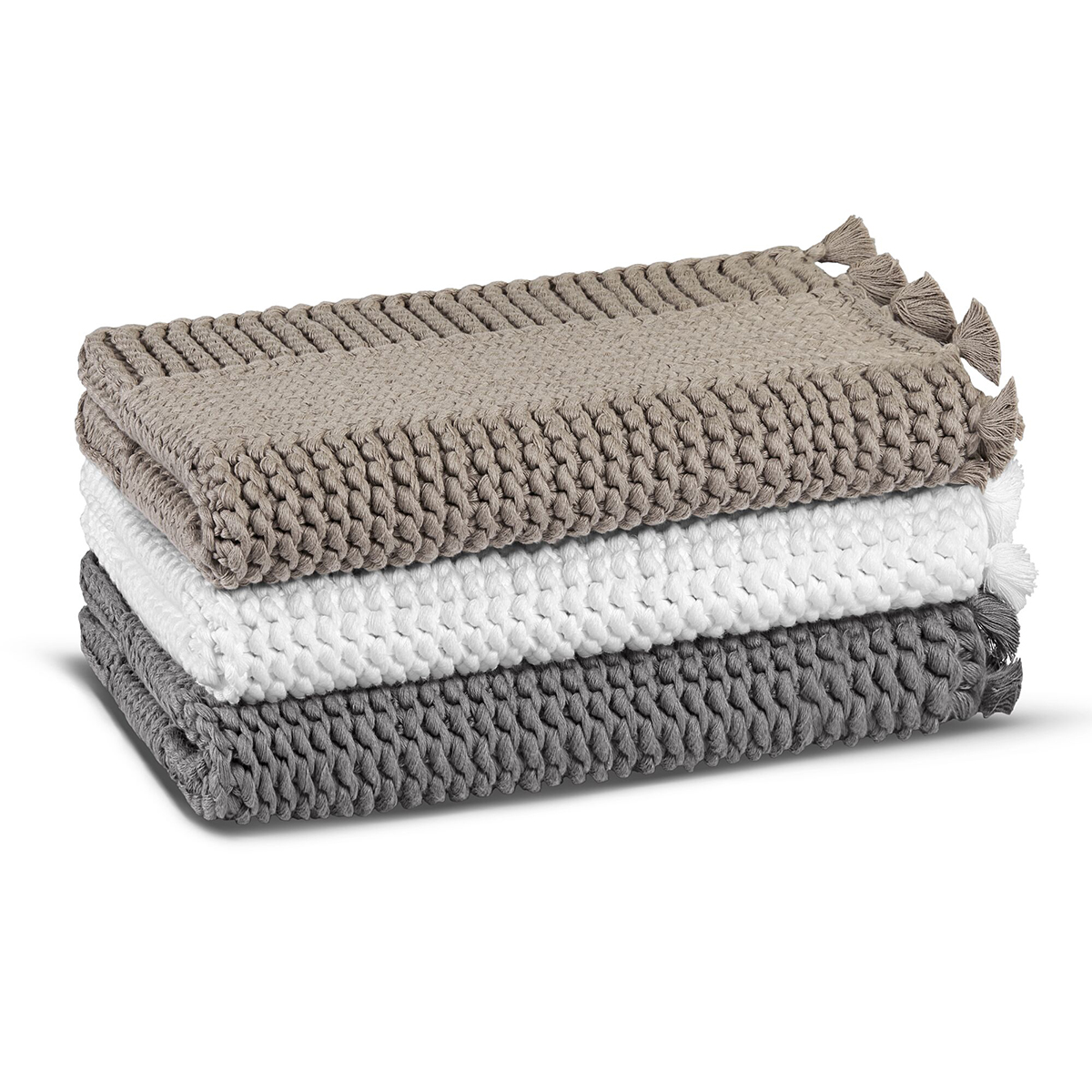 Очень плотный, но и мягкий, этот коврик производит впечатление вещи, связанной на бабушкиных спицах. Добавит теплоты и оригинальности в дизайн вашей ванной.