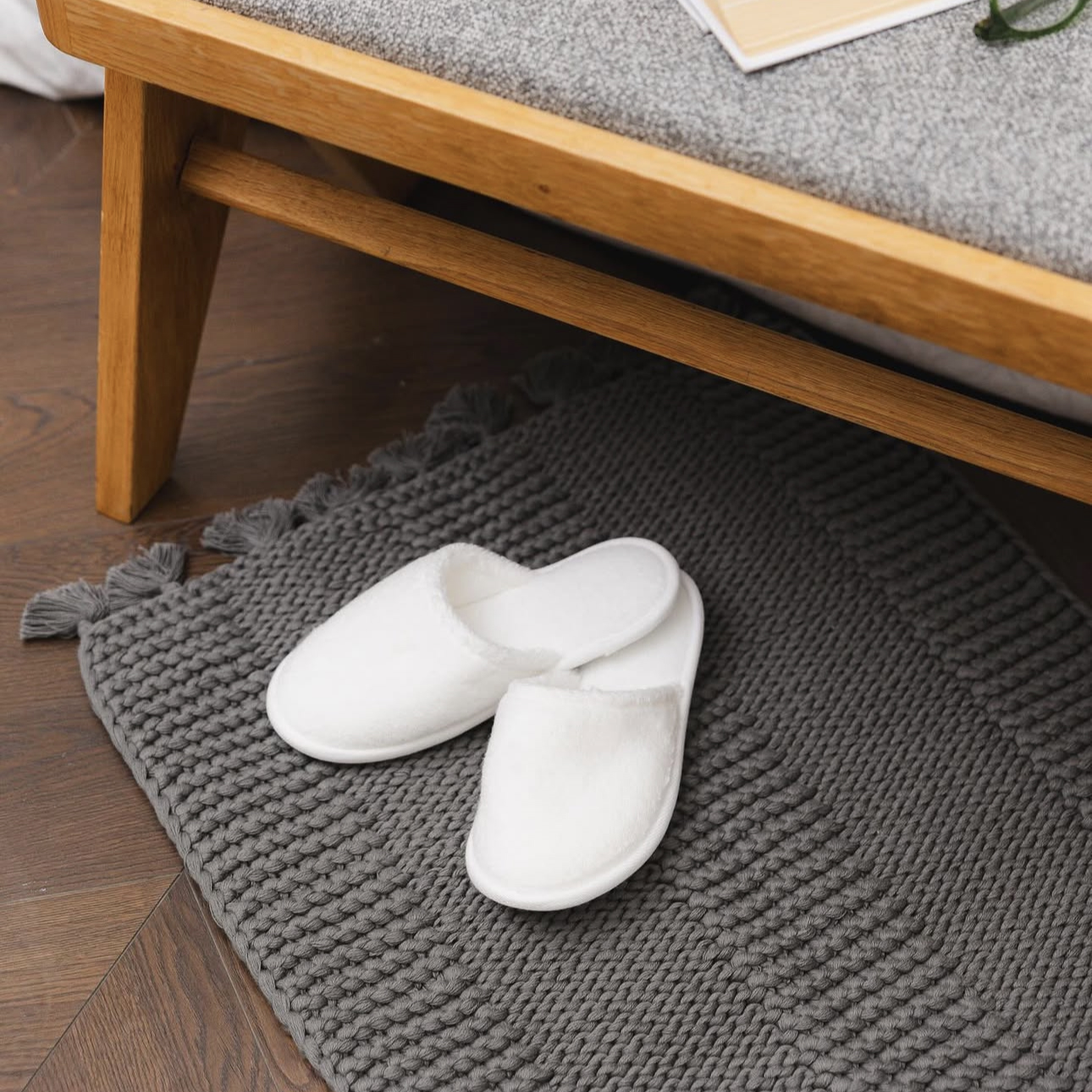 Коврики Frida очень плотные и тяжелые. Благодаря своему весу они не будут скользить по полу. А благодаря фактурной вязке из толстой пряжи по ним очень приятно ходить босиком.