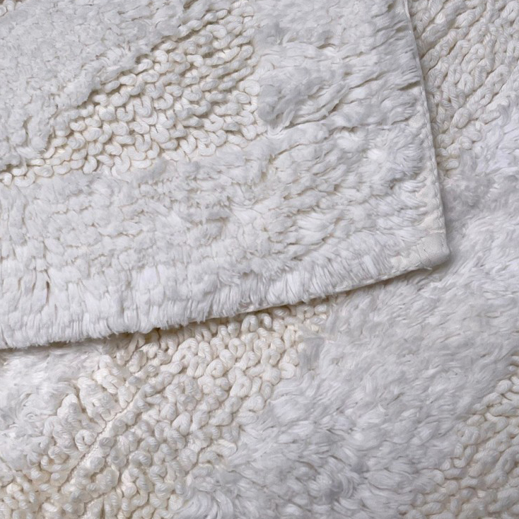 Коврик Diagonal Tufted (Диагональ Тафтед) от L'appartement (Лаппартмент) выполнен из 100% турецкого длинноволокнистого хлопка. В ковриках сочетаются две фактуры: петли из толстой хлопковой пряжи и махра с очень высоким ворсом. Диагональный узор представляет собой чередование этих фактур. Край ковриков обработан лаконичным хлопковым кантом.
