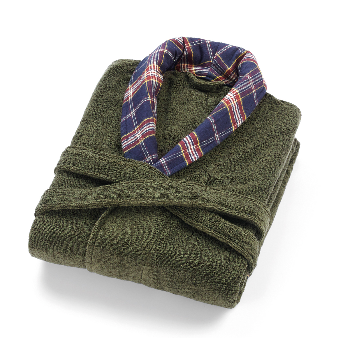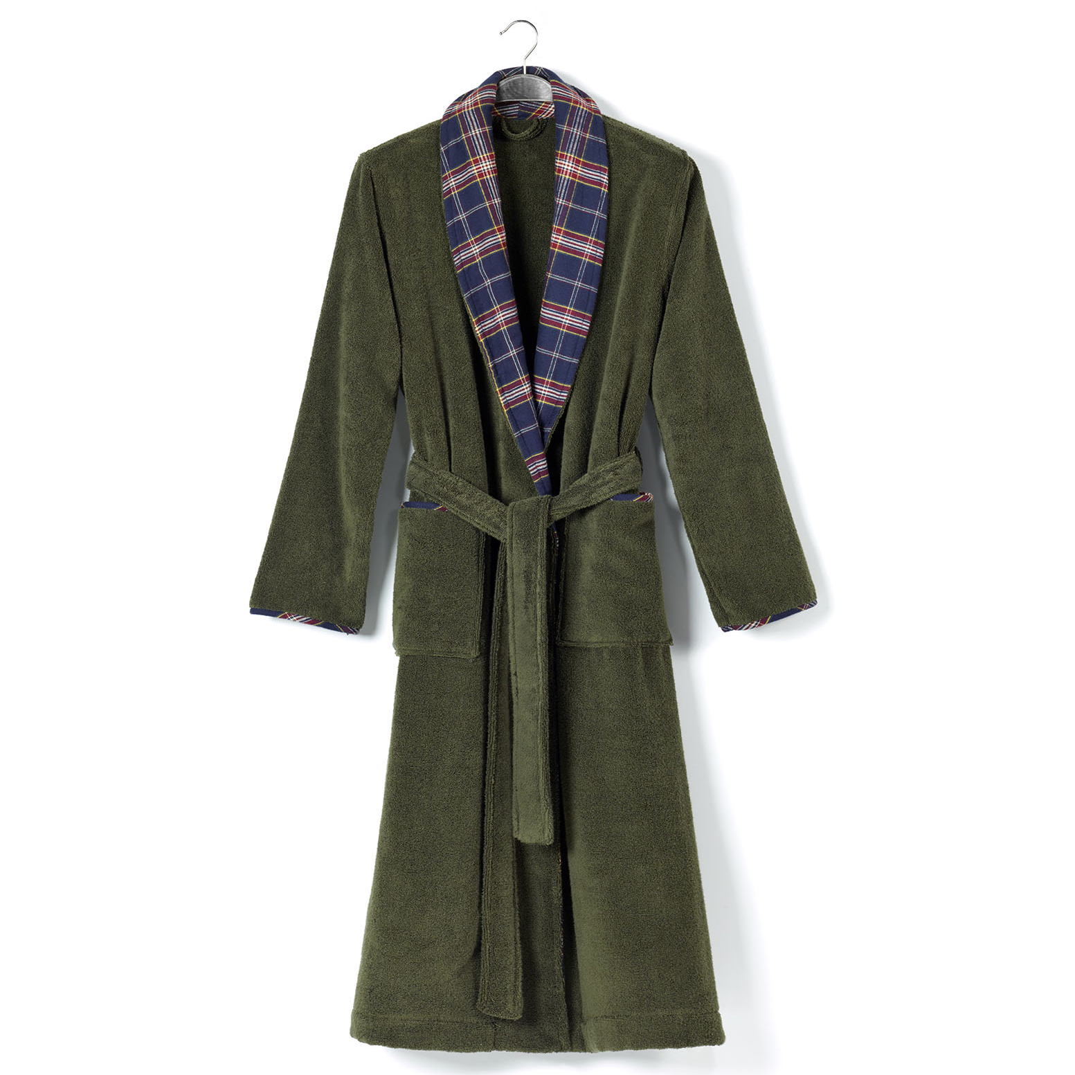 Халат английский стиль махровый воротник Шотландская клетка Signature S/M - Оливковый