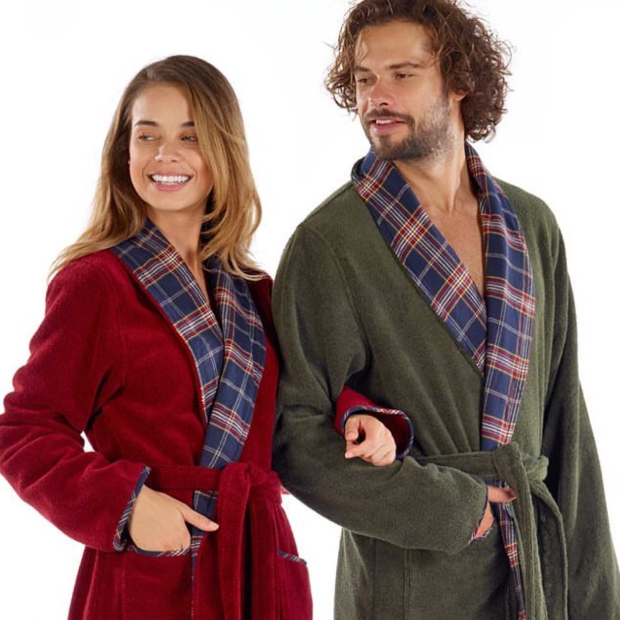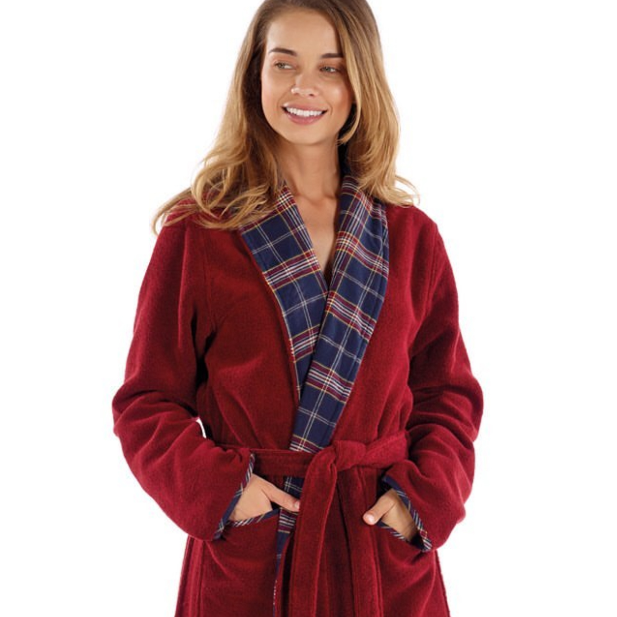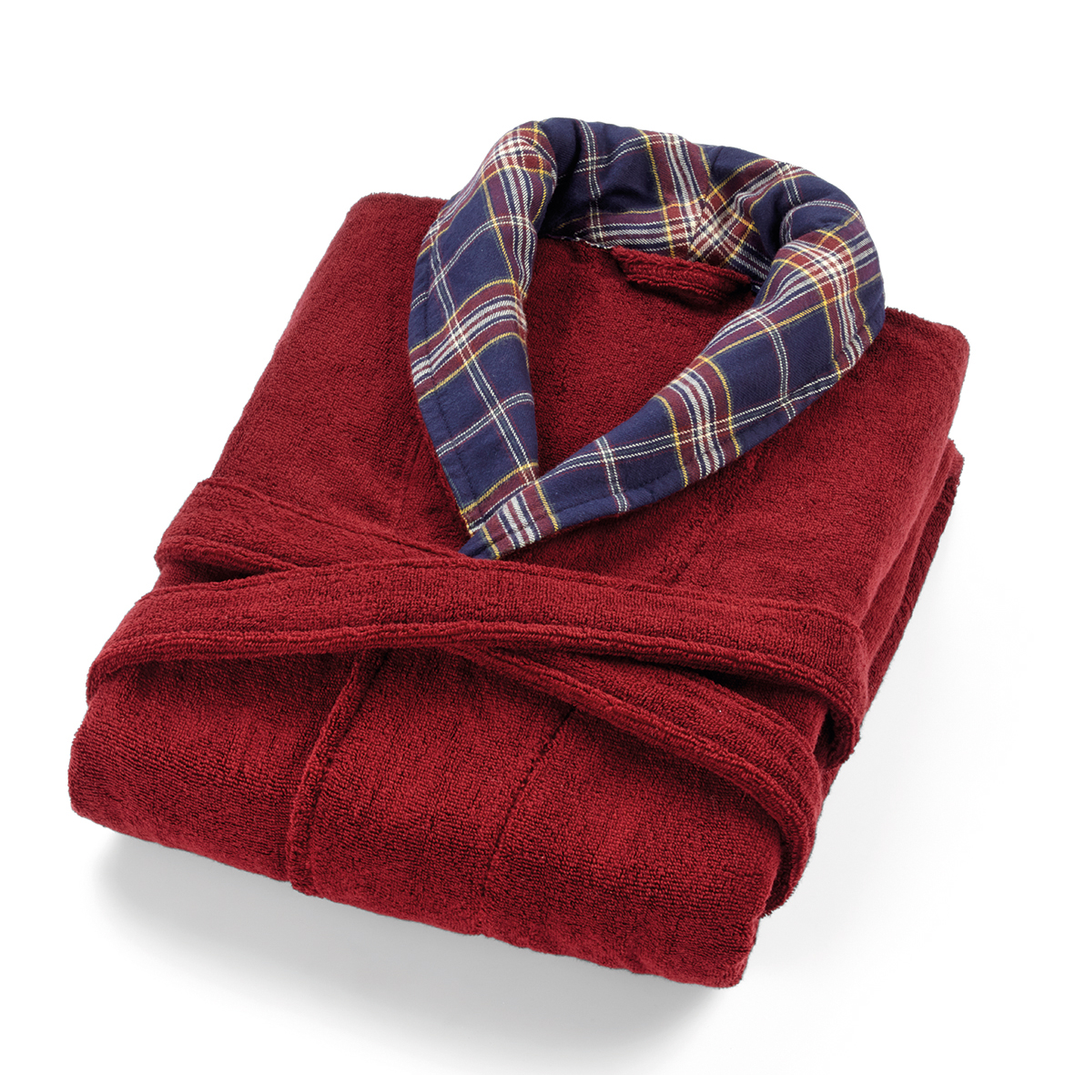Халат английский стиль махровый воротник Шотландская клетка Signature S/M - Бордовый