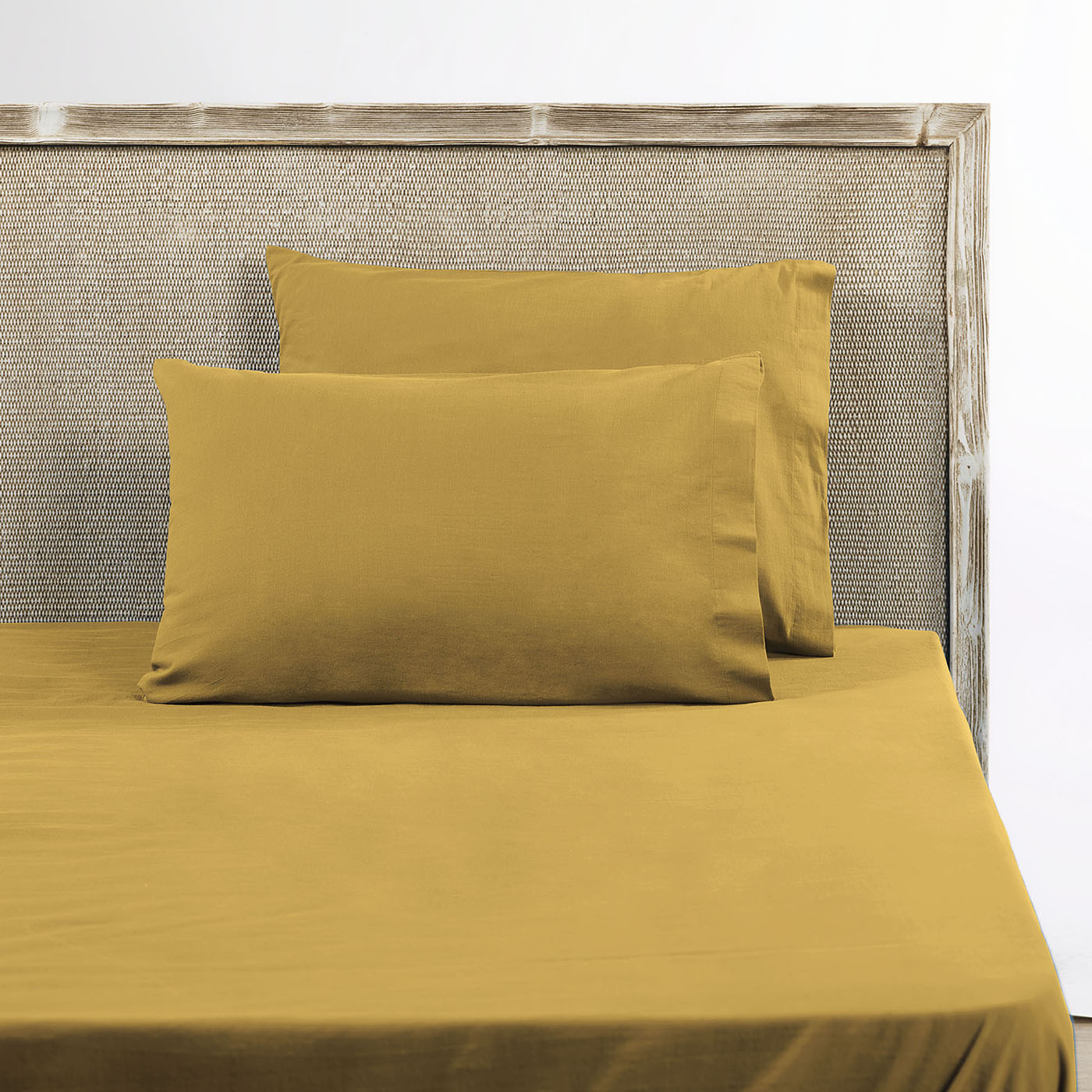 Наволочки хлопковые однотонные под лён комплект (50х70 - 2 шт.) Elwood - Желтые