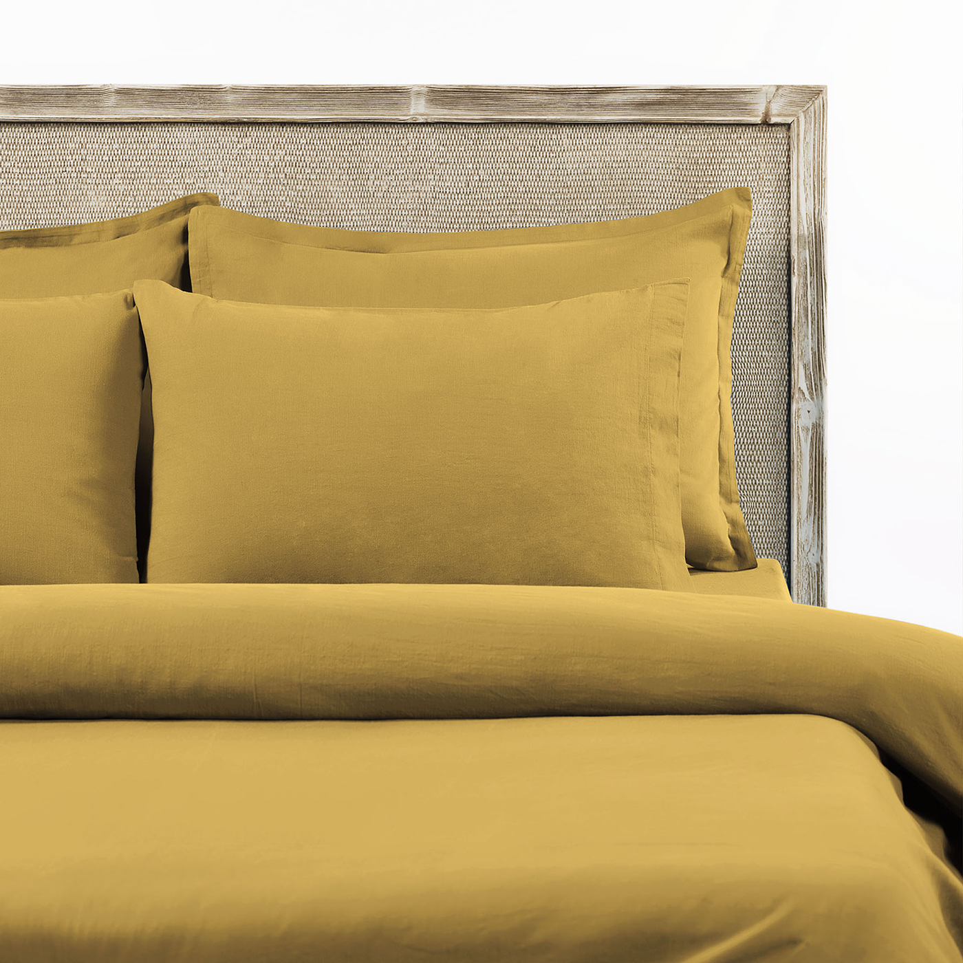 Простыня хлопковая однотонная под лён 260х260 Elwood - Желтая