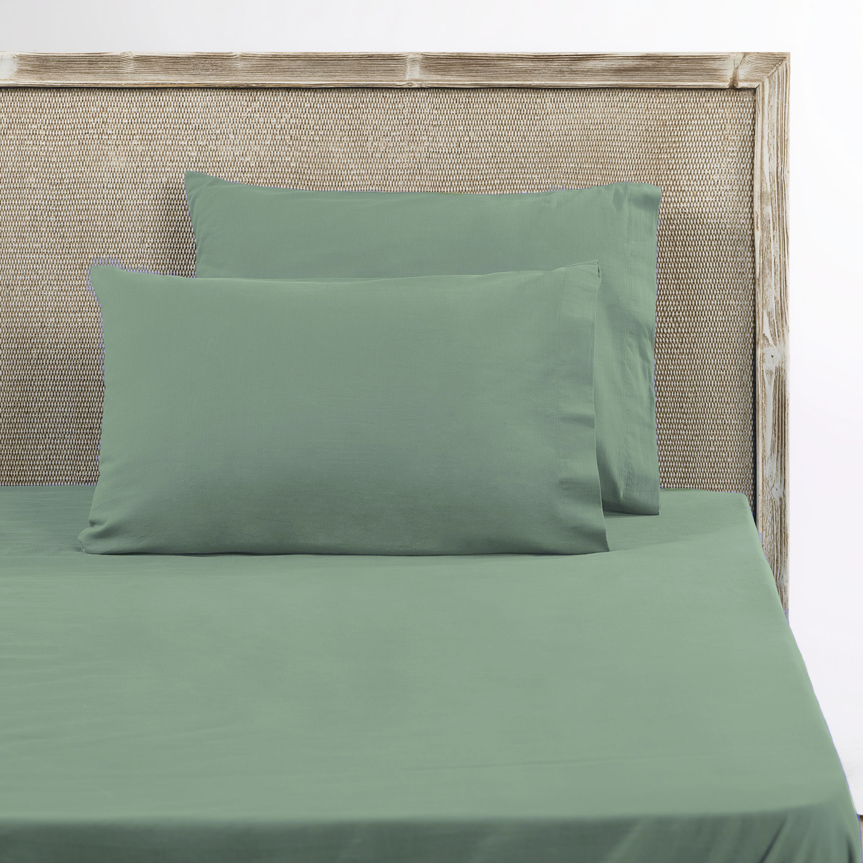 Простыня хлопковая однотонная под лён 260х260 Elwood - Зеленая