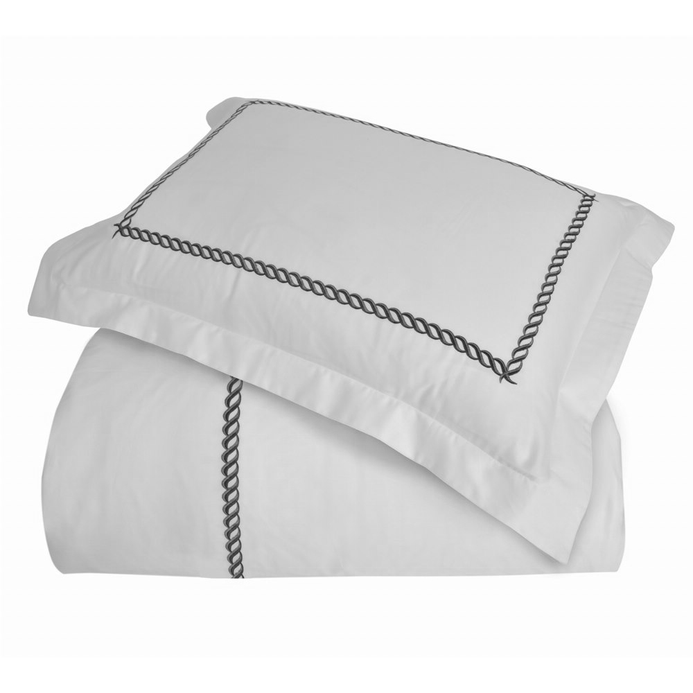 Наволочка с вышивкой косами хлопок сатин 50х70 Messina Marine - Белый / Антрацит