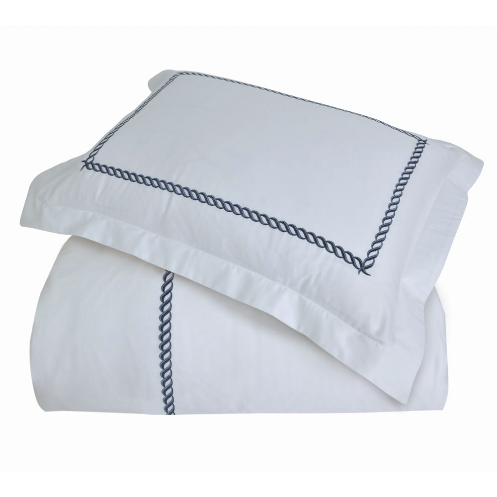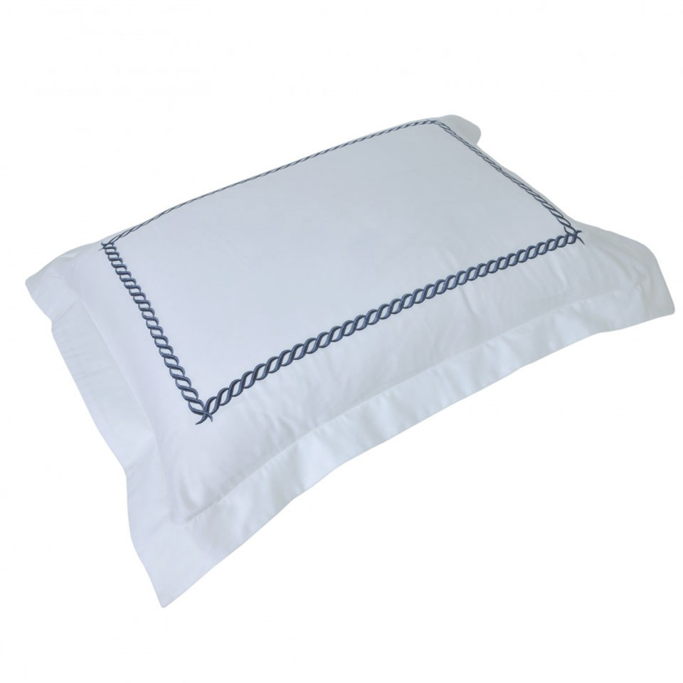 Наволочка с вышивкой косами хлопок сатин 50х70 Messina Marine - Белый / Синий