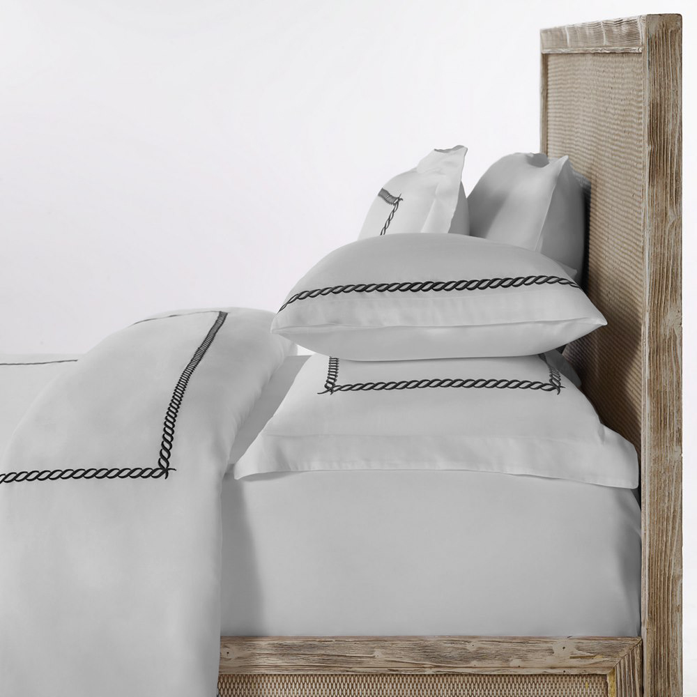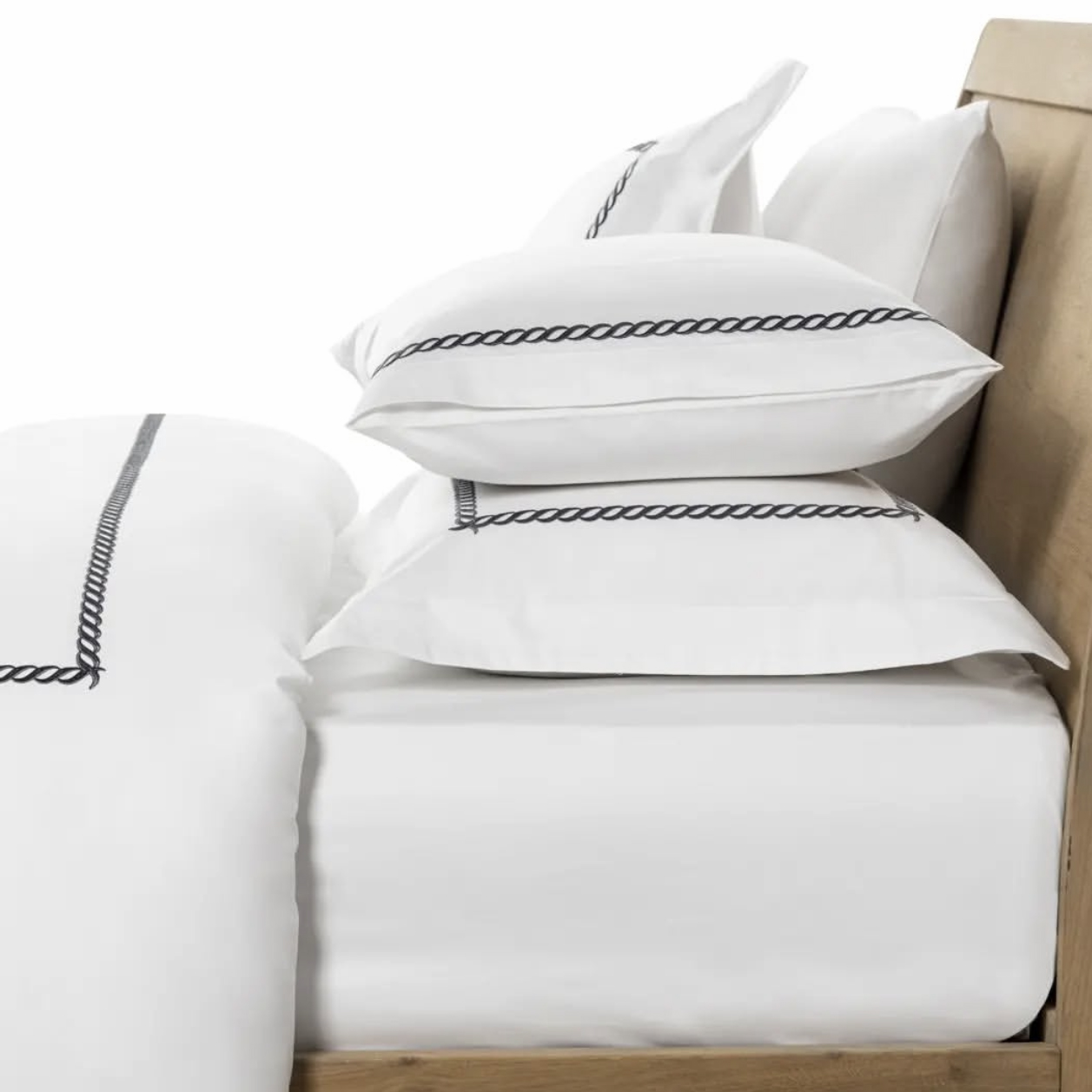 Пододеяльник с вышивкой косами хлопок сатин 300 ТС 200х220 Messina Marine - Белый / Антрацит