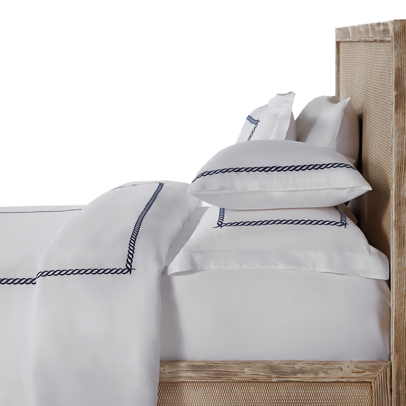 Пододеяльник с вышивкой косами хлопок сатин 300 ТС 200х220 Messina Marine - Белый / Синий