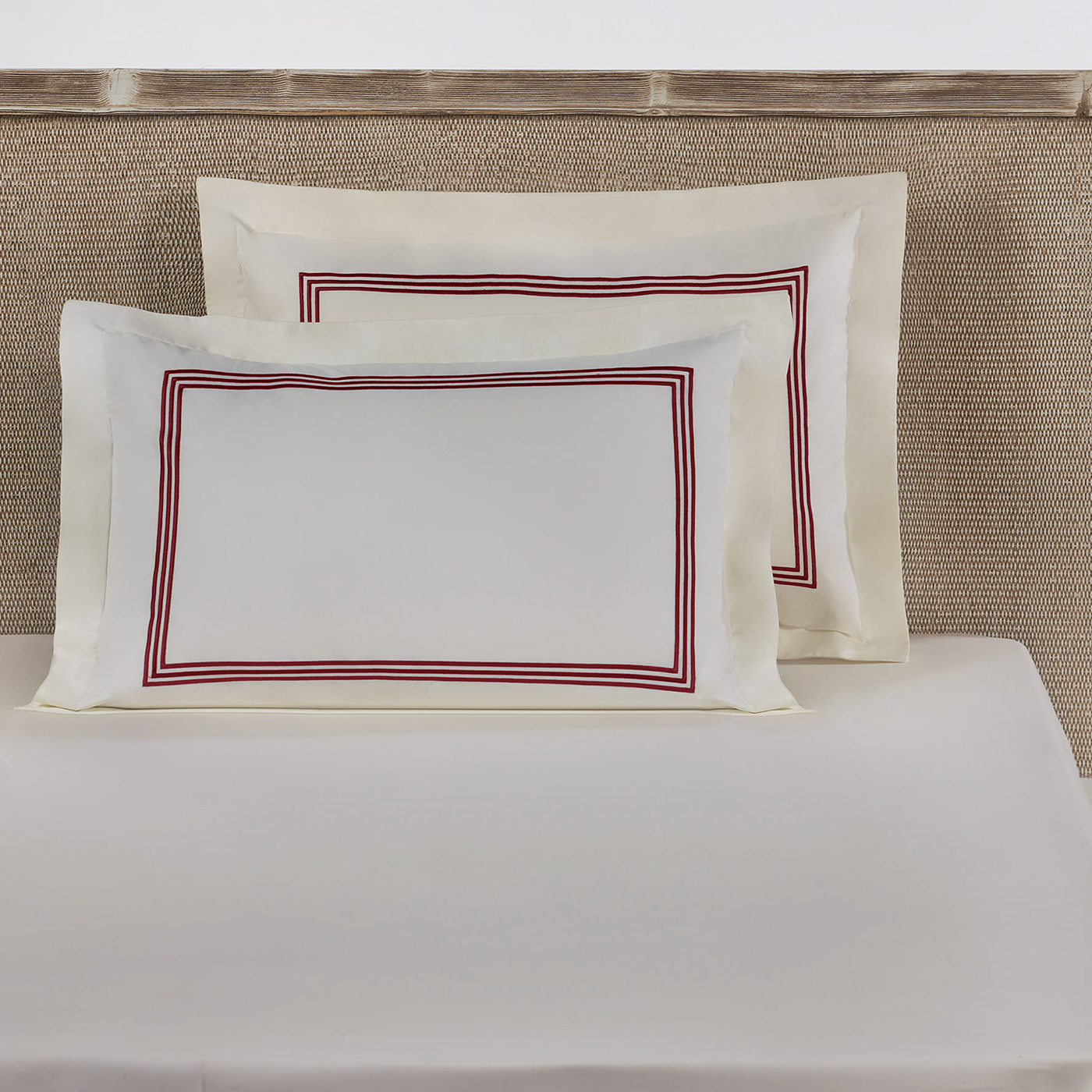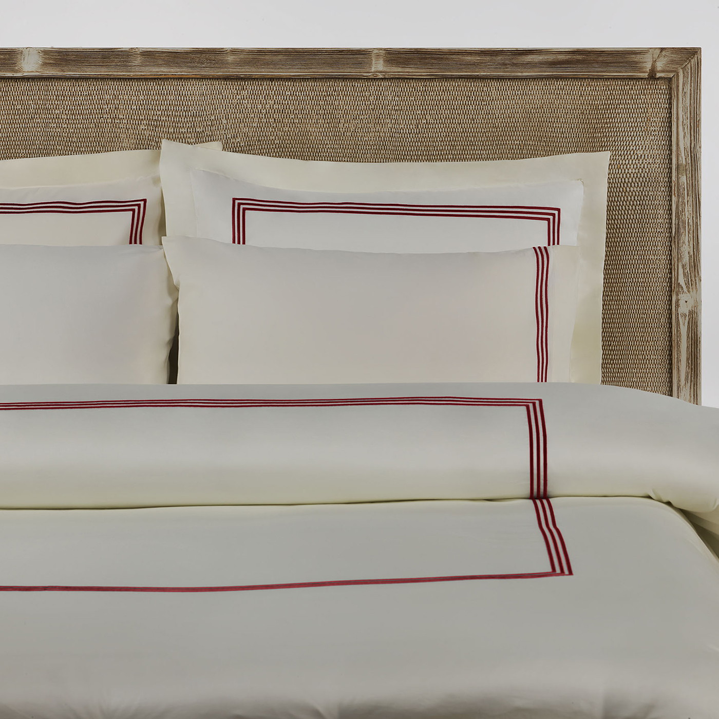 Наволочка 300 ТС сатин с вышивкой 50х70 Toscana - Слоновая кость / Красный