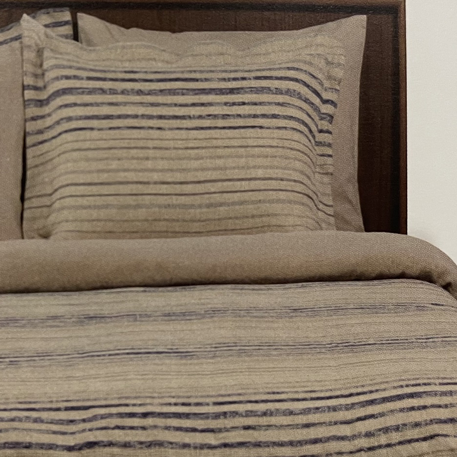Пододеяльник Lorren (Лорен) от L'appartement (Лаппартмент) выполнен из высококачественного 100% льна, ткань однотонная натурального льняного оттенка с синими полосками.
