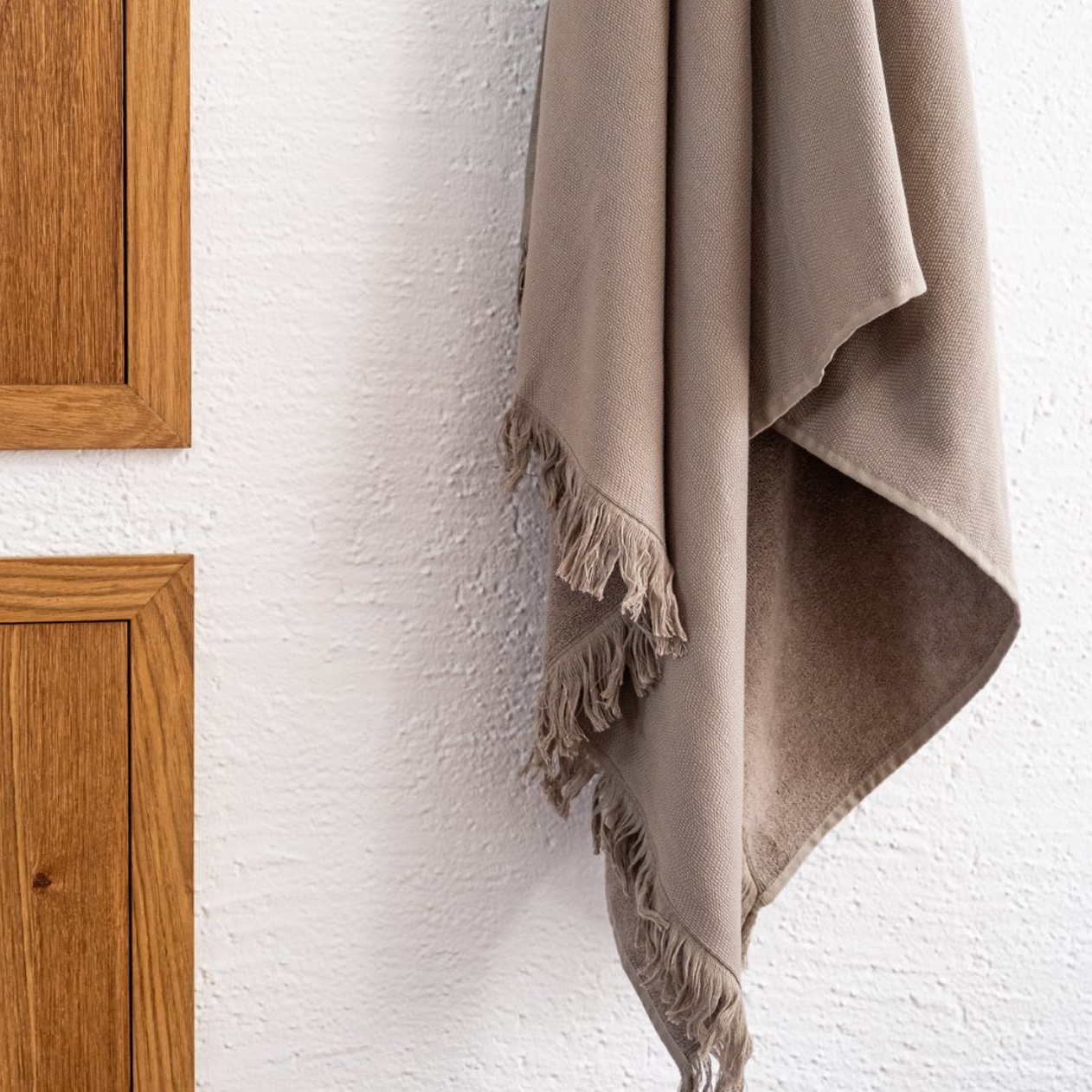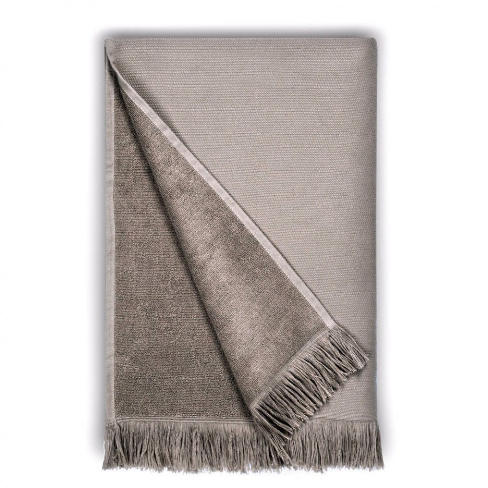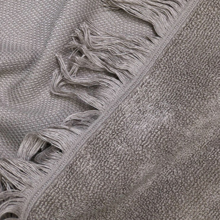 Несмотря на свою легкость, она отличается высокой водопоглощаемостью. Изделие дополнено бахромой — современным отсылом к традиционному плетению пештемалей.