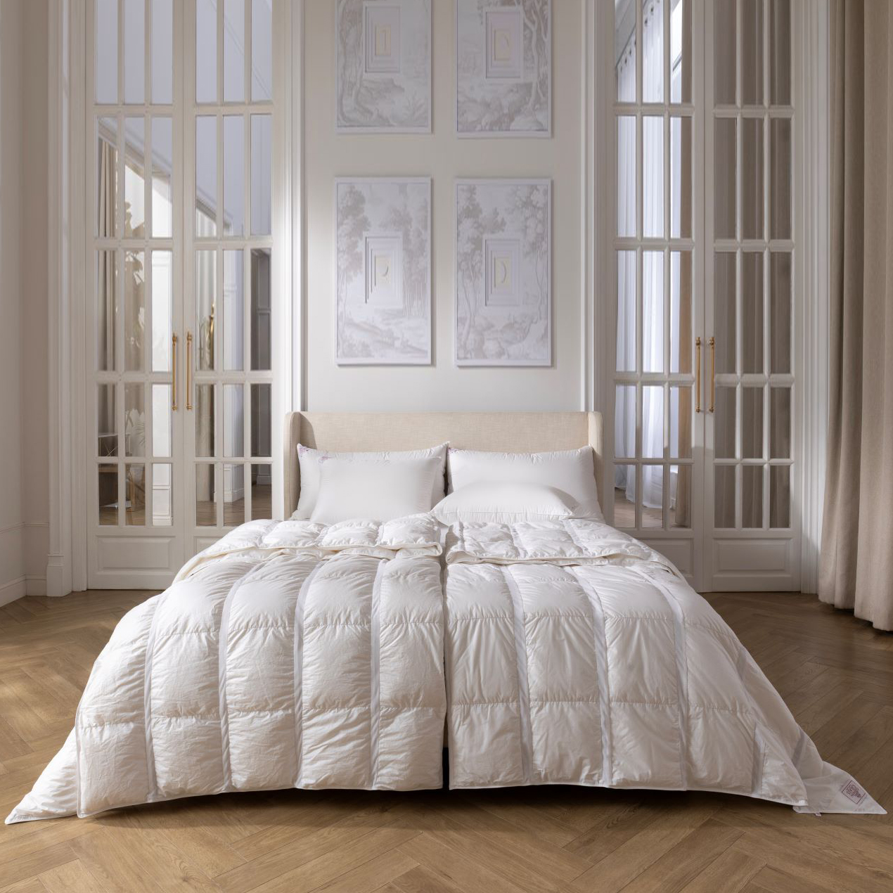 В лимитированной эксклюзивной коллекции одеял Royal Balance Grass воплотились самые актуальные тенденции пуховой моды класса люкс: технологии позволили по-новому раскрыться традиционным роскошным материалам. Нежные, пышные и теплые кассетные одеяла из 100% гусиного пуха в мягчайшем хлопковом мако-батисте дополнили особыми перфорированными вставками для улучшенного воздухообмена и терморегуляции. Необычное решение позволило добиться идеального баланса ощущений в любое время года. Royal Balance Grass подстраивается под окружающую обстановку, обнимает пуховой нежностью и отводит лишнее тепло, сохраняя гармоничную атмосферу для здорового сна.