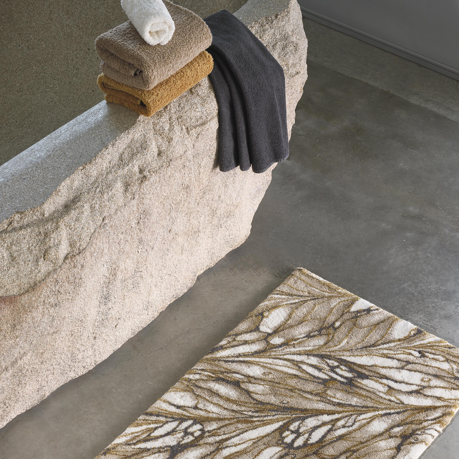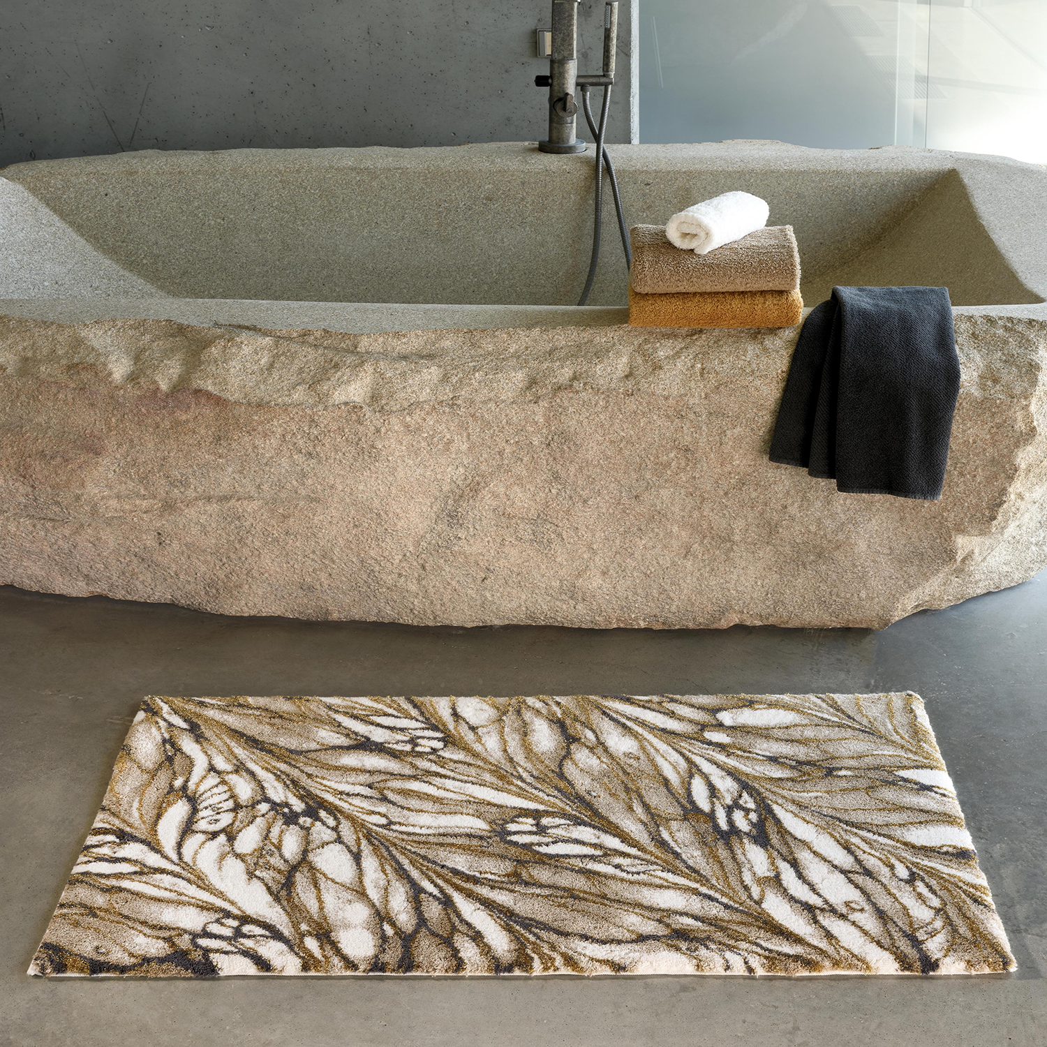 Этот премиум коврик идеально дополнят полотенца от Abyss & Habidecor в цветах - 103 Ivory / Слоновая кость, 711 Taupe / Светло-коричневый, 770 Linen / Льняной, 840 Gold / Золотой и 997 Volcan / Антрацит.