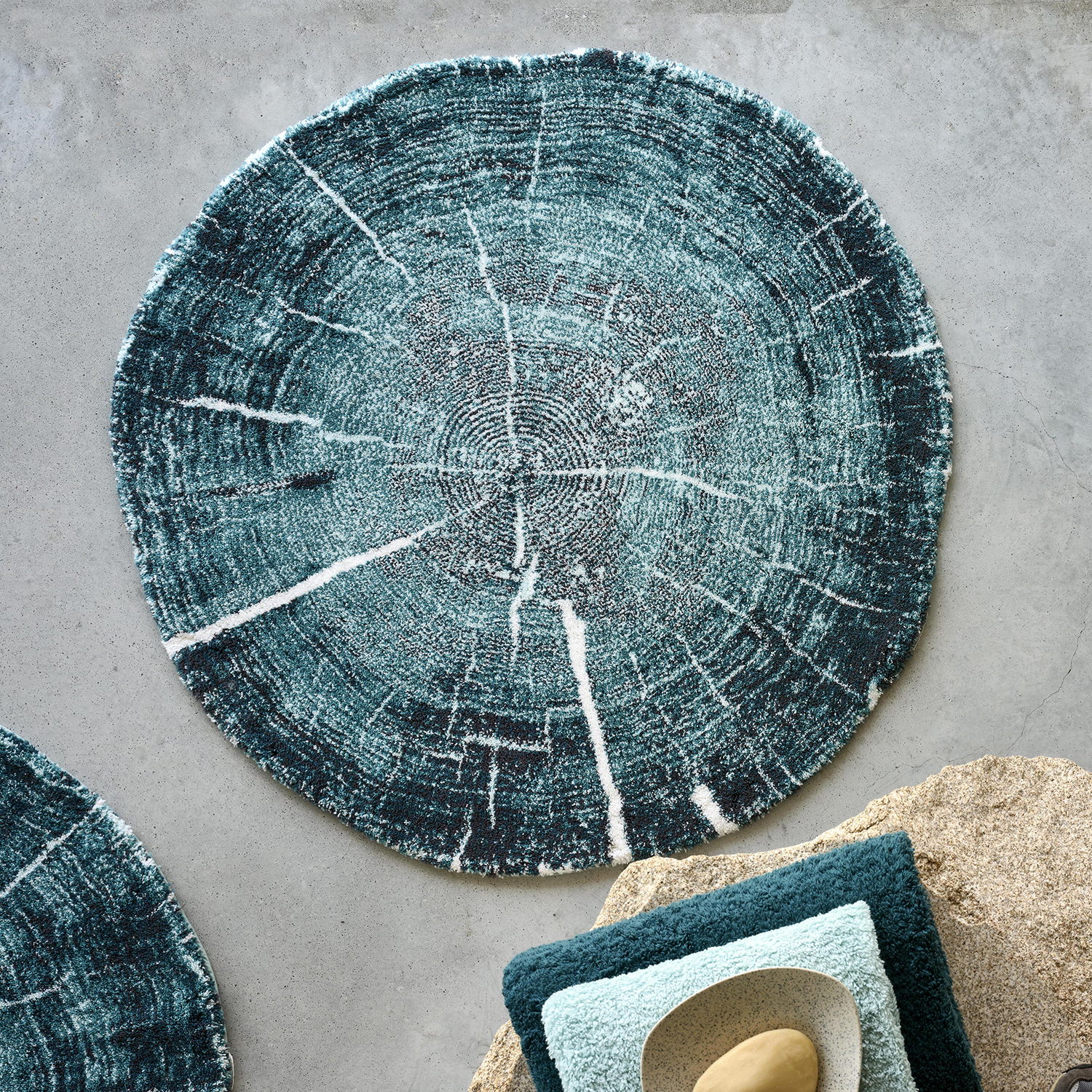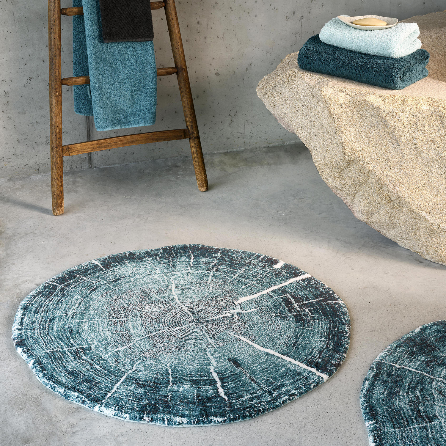 Коврик для ванной комнаты Fossil (Фоссил) от Abyss & Habidecor (Абисс энд Хабидекор) – настоящее произведение искусства. Диаметр этого круглого коврика для ванной составляет 95 см, а его дизайн вдохновлён разрушительным воздействием времени. Коврик Fossil напоминает поперечное сечение древнего дерева, затвердевшего и окислившегося под землёй. Fossil в прекрасных бирюзовых оттенках воплощает красоту естественной трансформации, где история и искусство гармонично сливаются воедино.