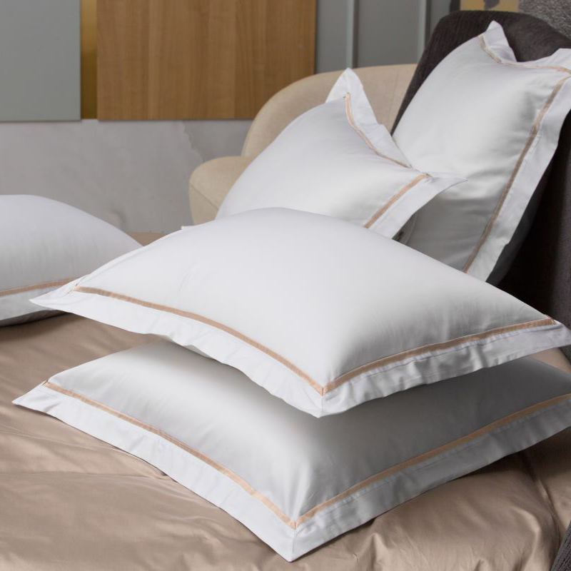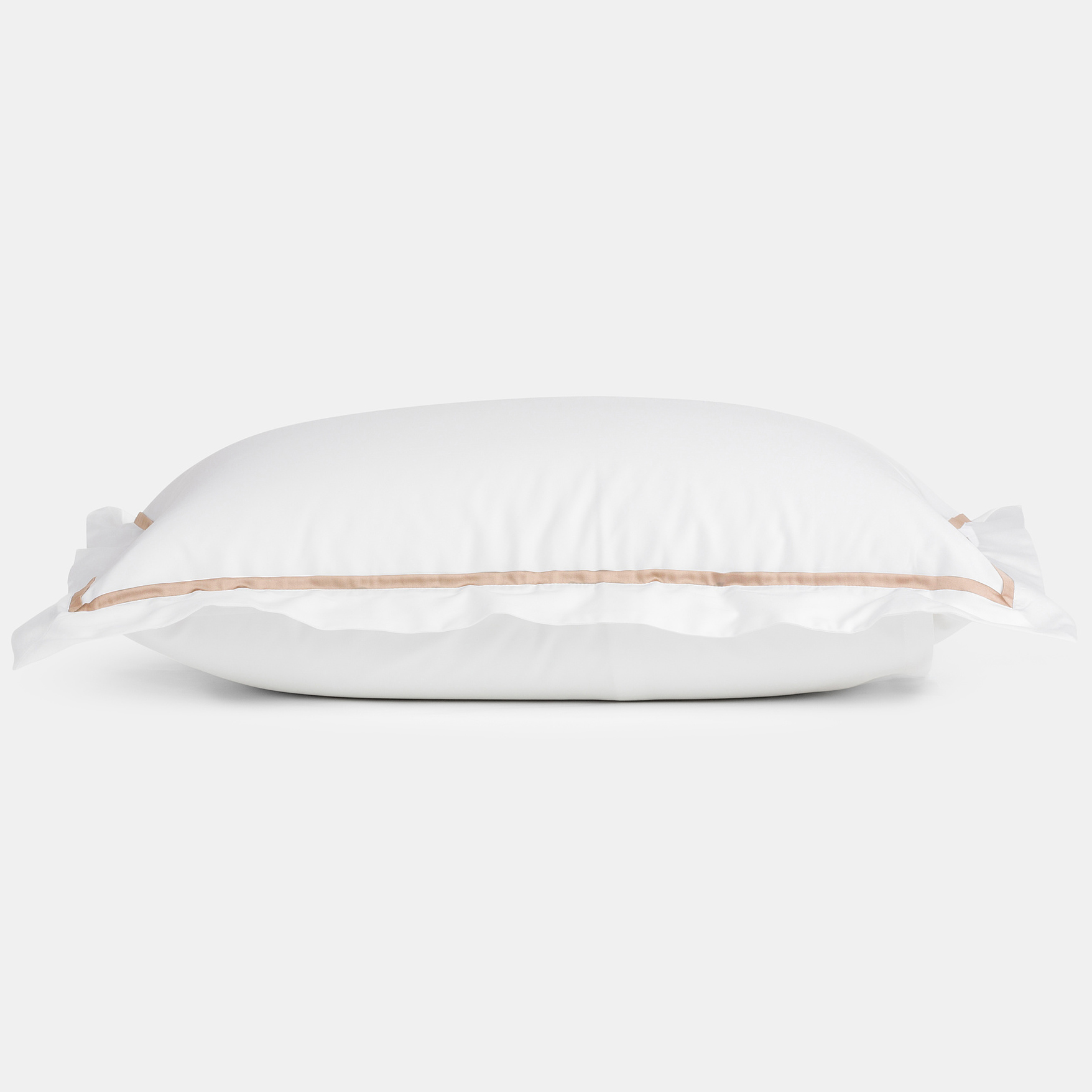 Комплект наволочек (50х70 - 2 шт.) Alpine Nude Pink Allure Grass (Альпин Нюд Пинк Алюр Грасс) 100% Египетский хлопок Белый / Бежево-жемчужный от German Grass (Герман Грасс) - белоснежные наволочки с отделкой декоративным кантом бежевого цвета.